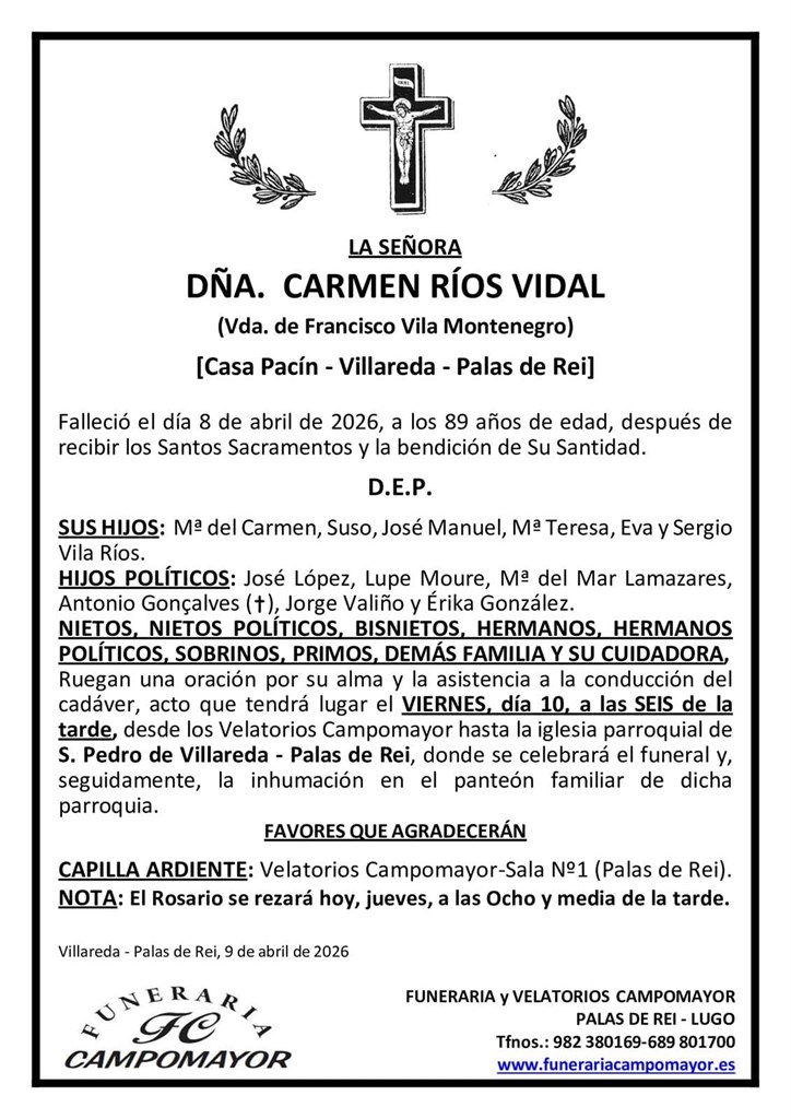 Últimas esquelas de Funeraria Campomayor