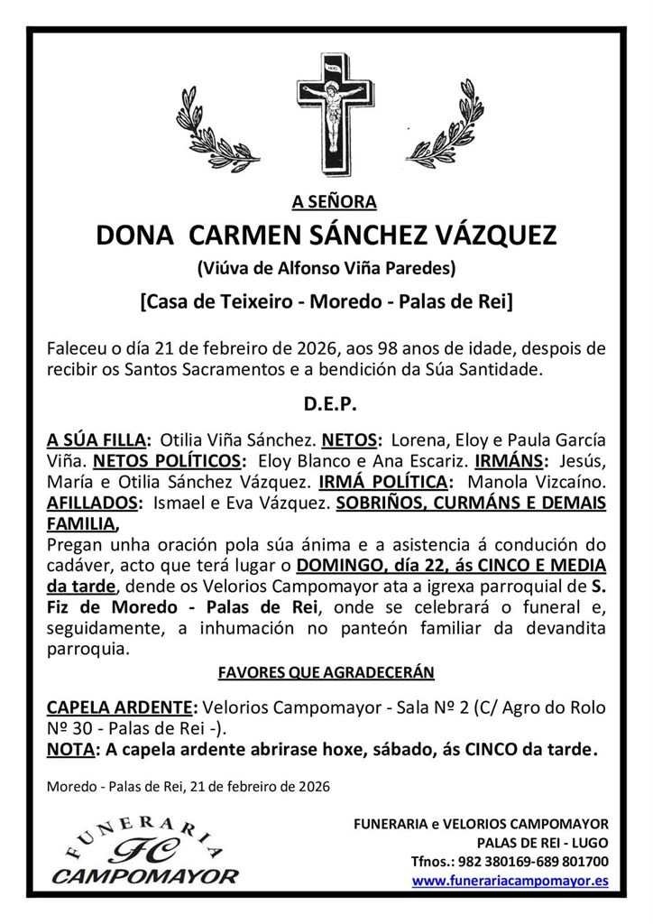 Últimas esquelas de Funeraria Campomayor
